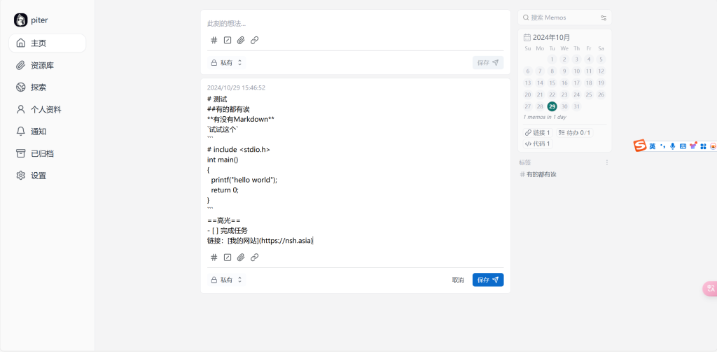PS:本人于10.30日晚上成功搭建好了memos,大家可以体验一下,想要注册的评论回复我体验