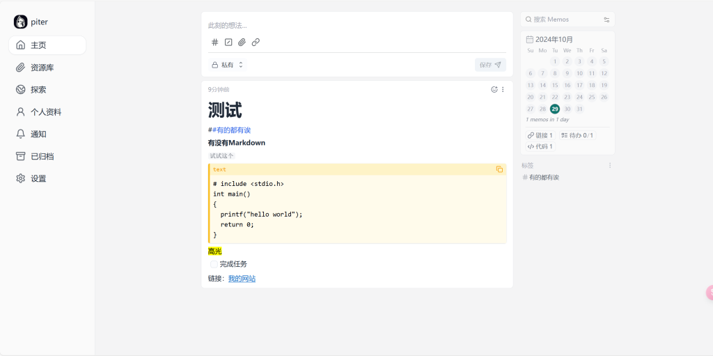 一款清爽且轻量级备忘录中心:memos