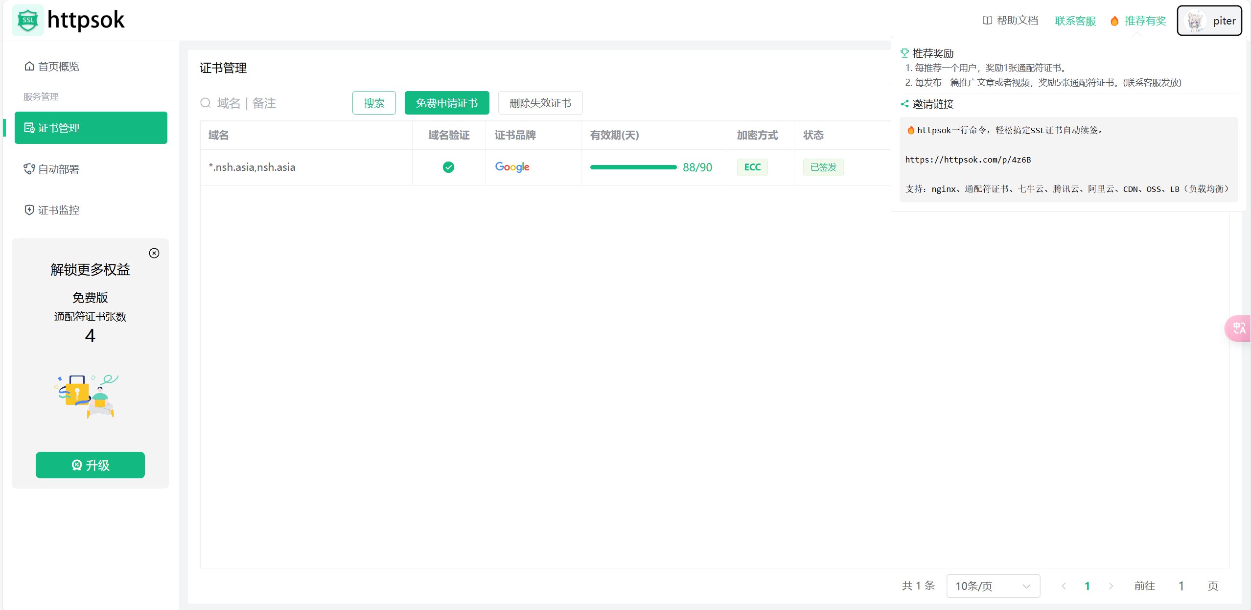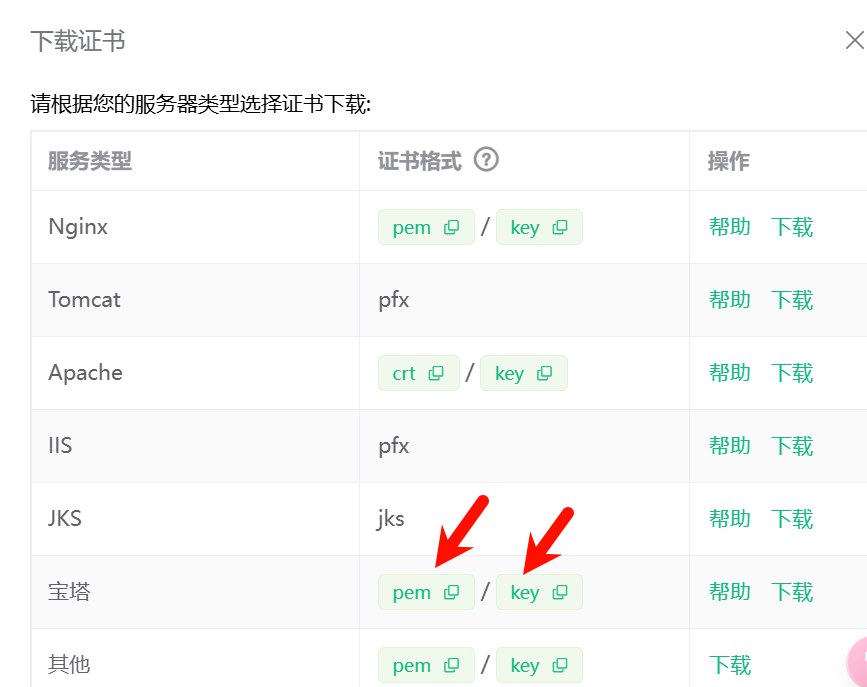 得到了证书我们复制宝塔证书进入宝塔面板的 SSL