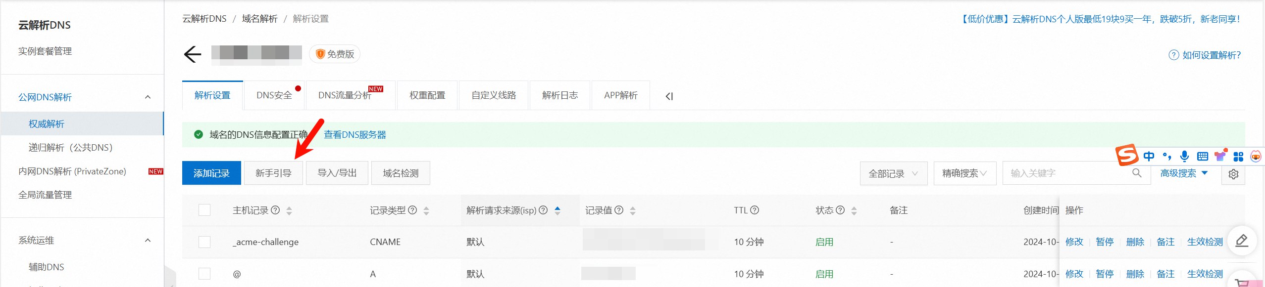 进入并配置云解析-DNS
