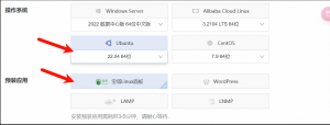 选择==Ubantu 22.04==(好像CentOS的版本有点老),勾选==预装宝塔面板==
