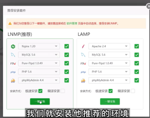 然后宝塔面板会弹出以下安装界面: